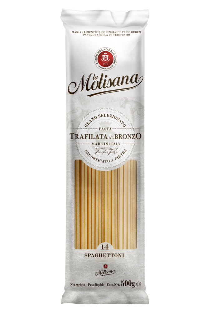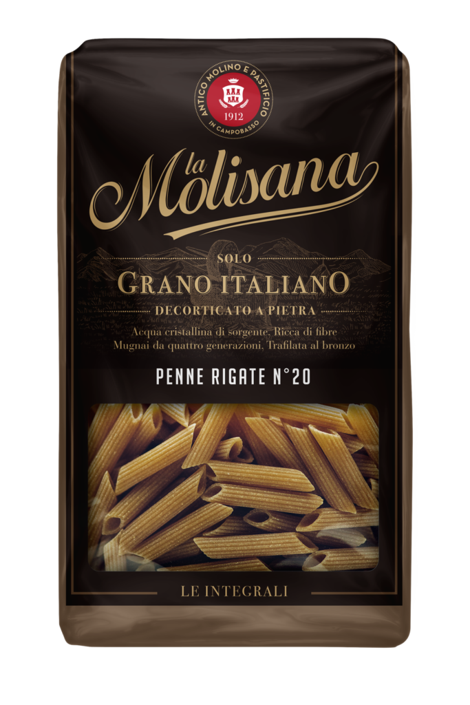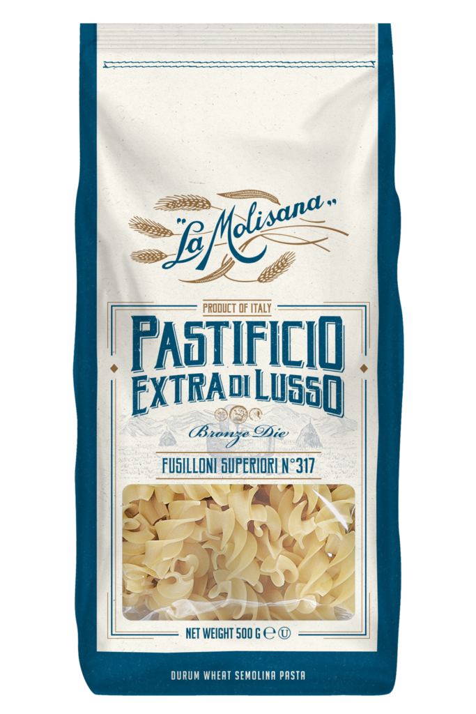 Massa super premium, trafilada em bronze, feita à partir de trigo de inverno que confere ao produto altíssimo teor de proteínas, obtendo como resultado a legítima massa al dente italiana.